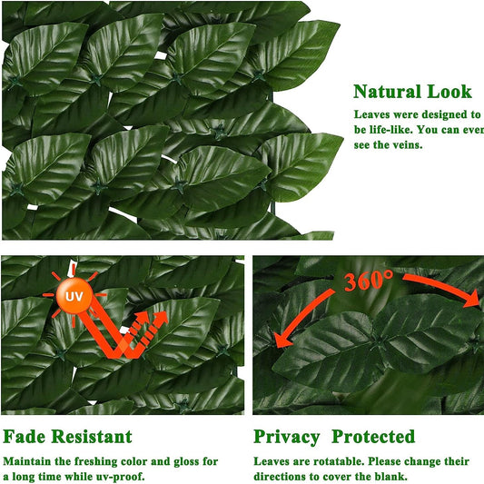 120x20 Inch Artificial Ivy Privacy Fence Screen, Artificial Faux Ivy Panels, Faux Privacy Fencing Artificial Hedge Fence, Greenery Wall Privacy Decoration for Outdoor Garden,Watermelon Leaves