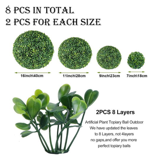 8pcs Sinsoledad Artificial Boxwood Topiary Balls Set, Faux Boxwood Decorative Spheres, Plastic Grass, 30mm Height, 8 Stitches per 10cm, with 100 Zip Ties for Garden, Backyard, Balcony Decor