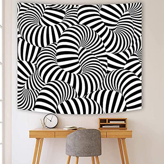 3D Vision Tapestry Black and White Wall hanging,Psychedelic Spiral Tapestry Stun Wall Art Tapestries Hanging for Dorm Room Living Home Decorative 59 x 51 Inches